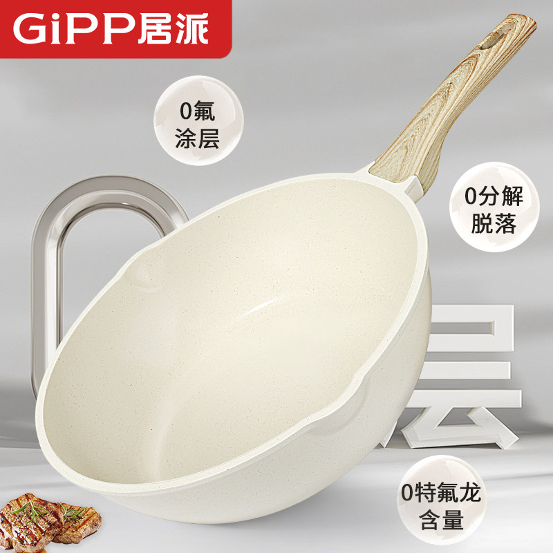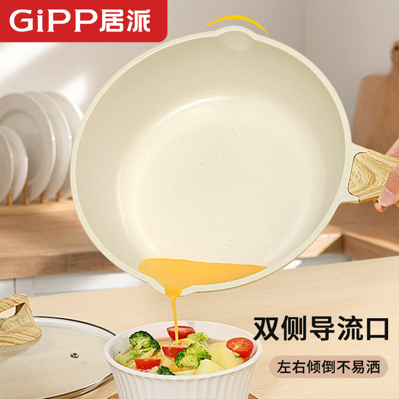 居派不粘锅麦饭石炒锅家用炒菜平底煎炒锅不沾锅电磁炉燃气灶专用