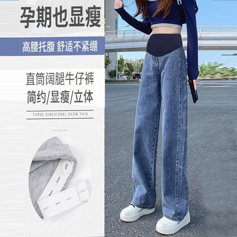 孕妇裤子女夏季薄款外穿时尚大码阔腿裤春秋款休闲打底牛仔裤秋装