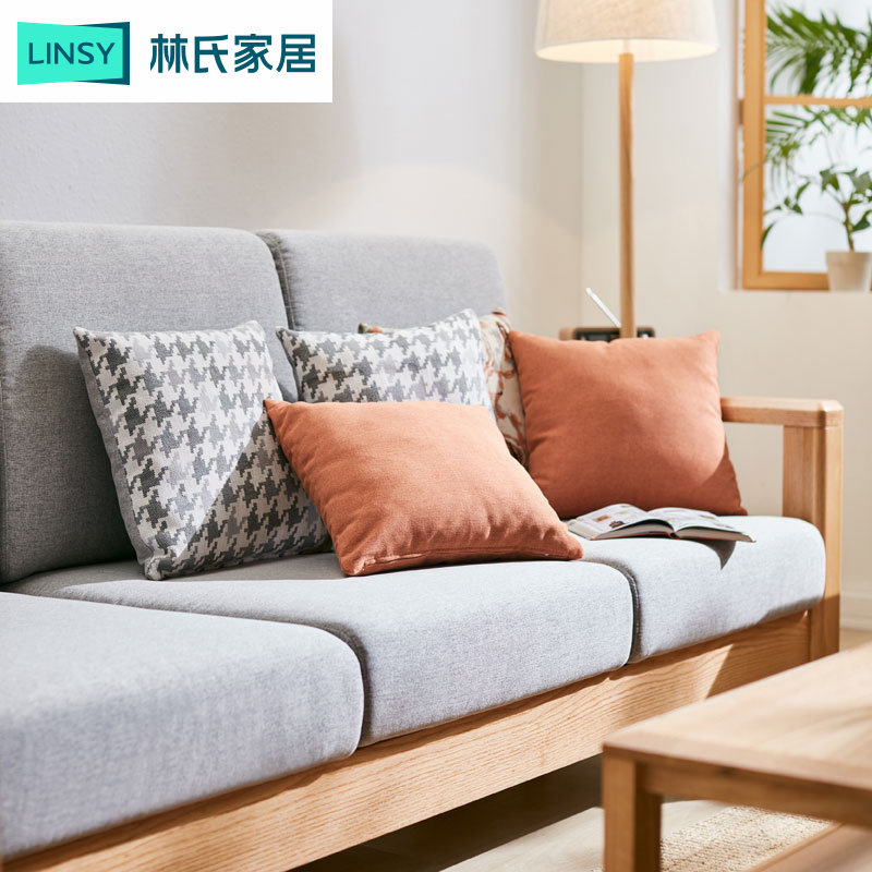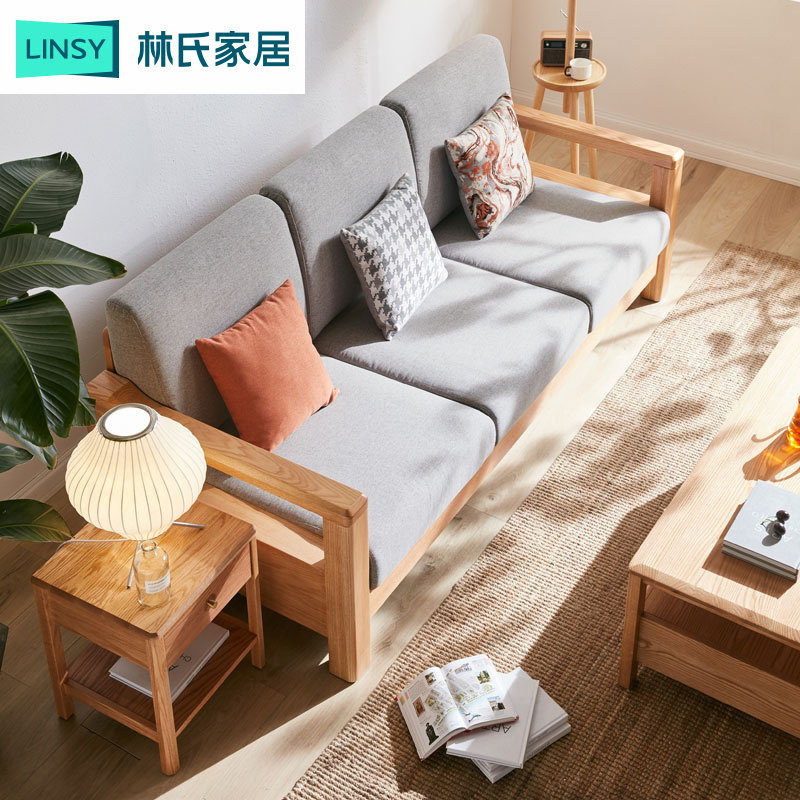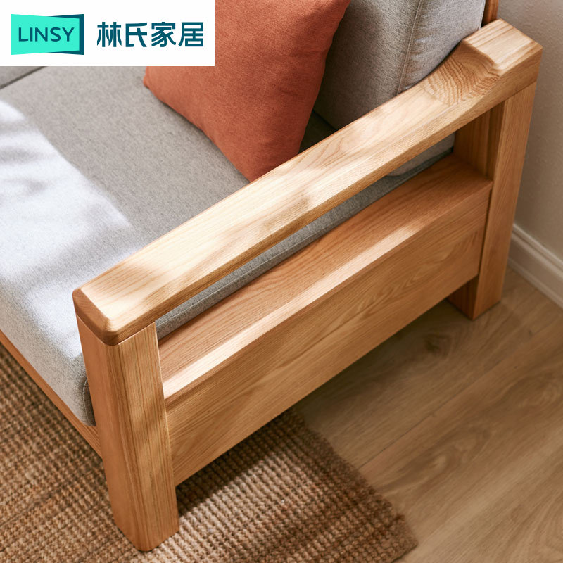 林氏家居北欧客厅实木布艺沙发橡木布原木风家具组合林氏木业CR4K