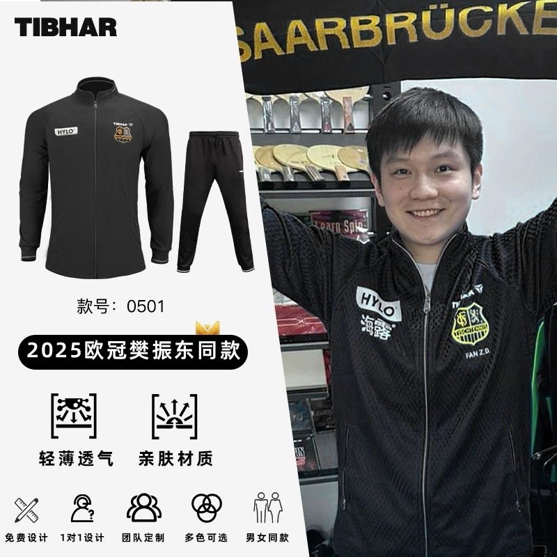 TIBHAR挺拔乒乓球运动服套装男樊振东文化衫透气长袖乒乓球大赛服