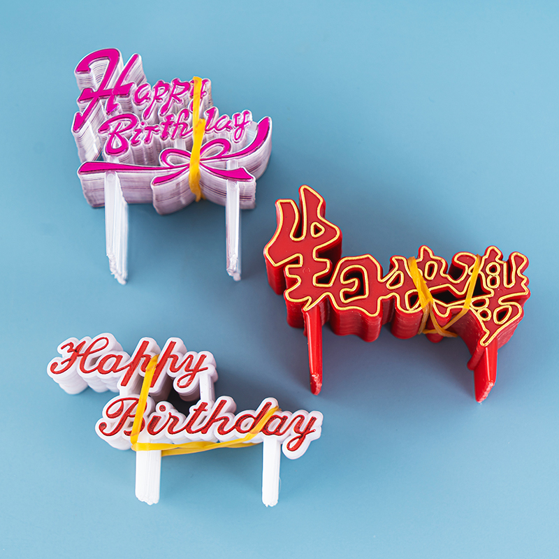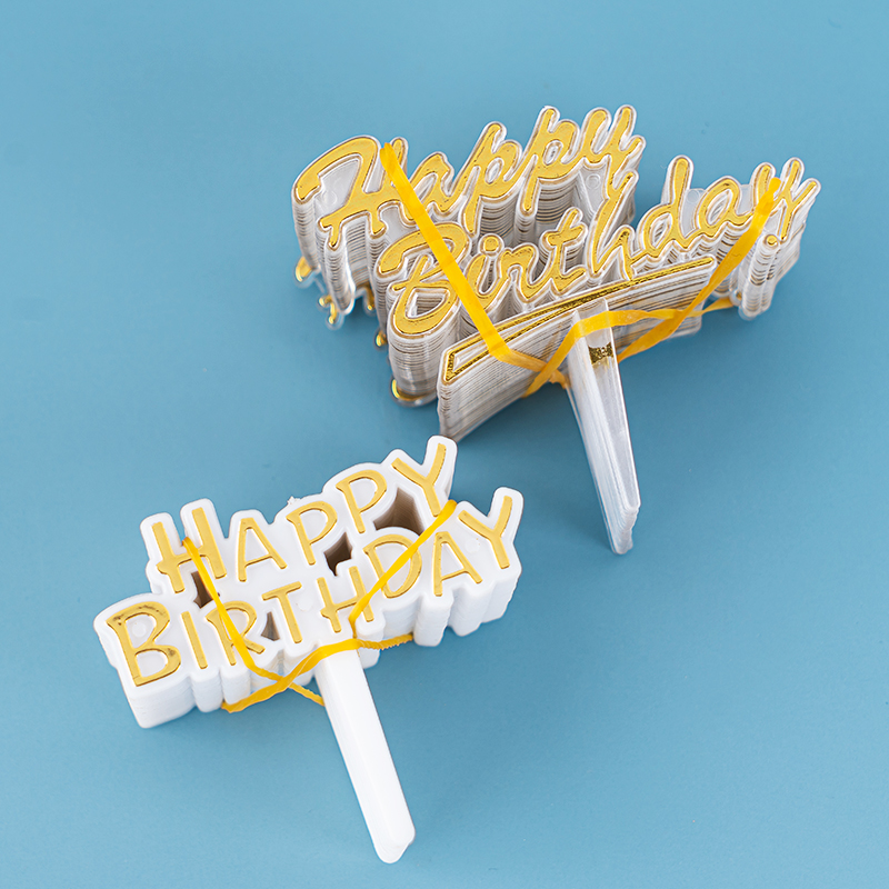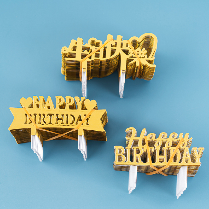 塑料烫金生日快乐蛋糕插牌 简约蛋糕装饰插件插卡烘焙用品100个装