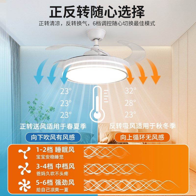 隐形扇风扇灯电扇吊灯现代简约家用一体客厅餐厅卧室吊扇灯