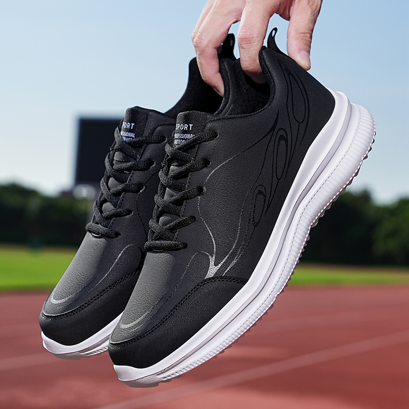春秋男鞋皮面防水运动鞋2025款休闲旅游跑步鞋防滑工作鞋黑色大码