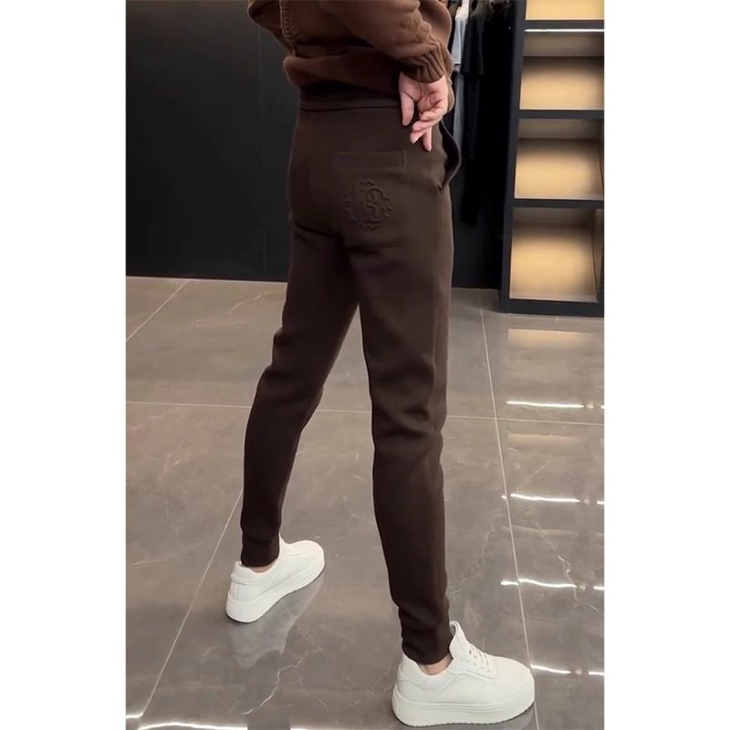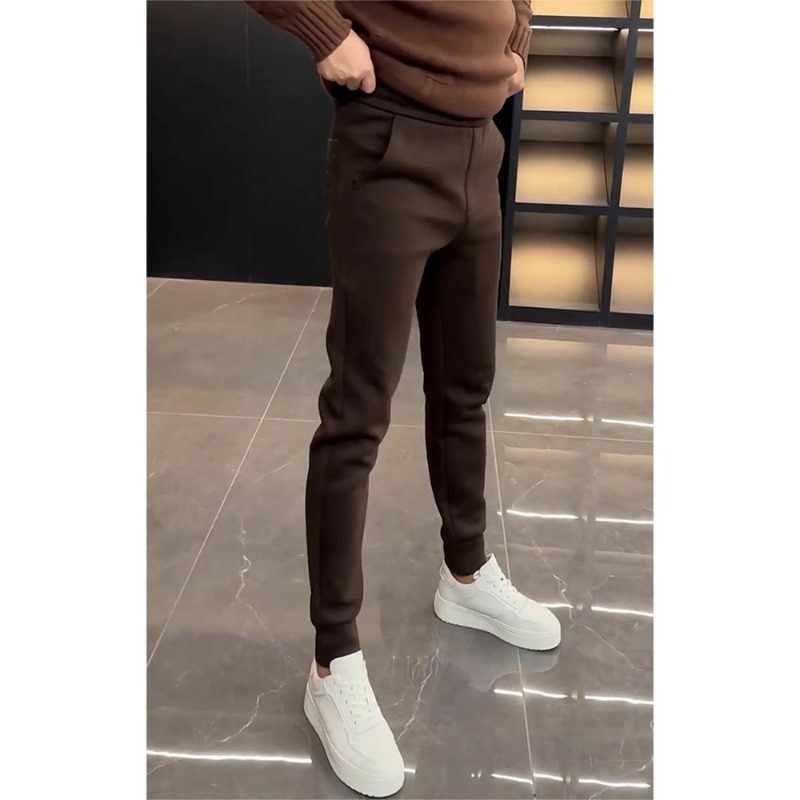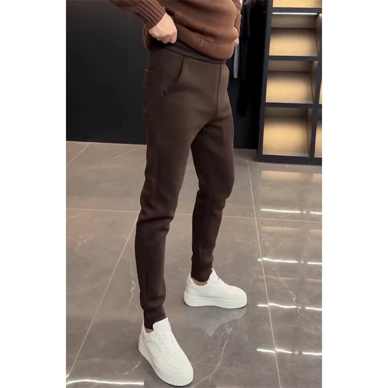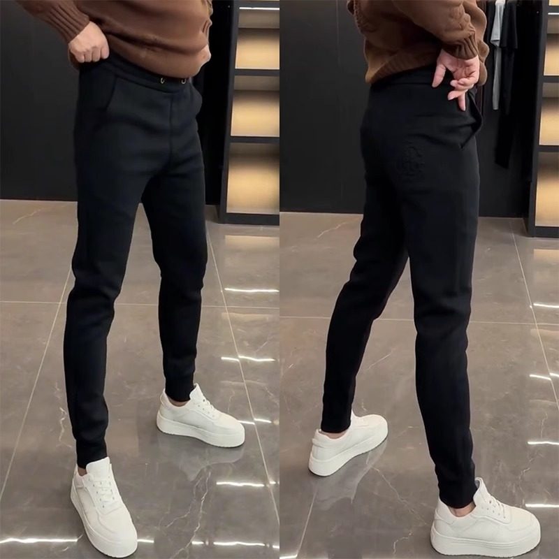 加绒纯色韩版修身休闲裤