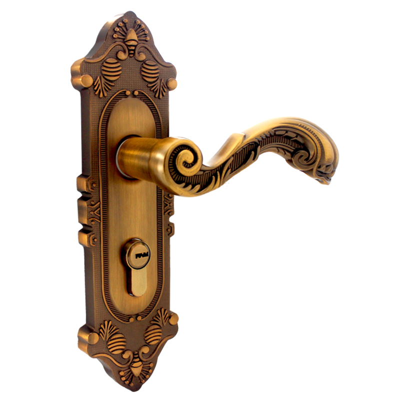 黄古铜欧式单舌房门锁孔距135/简约中式实心门把小单舌锁孔距130