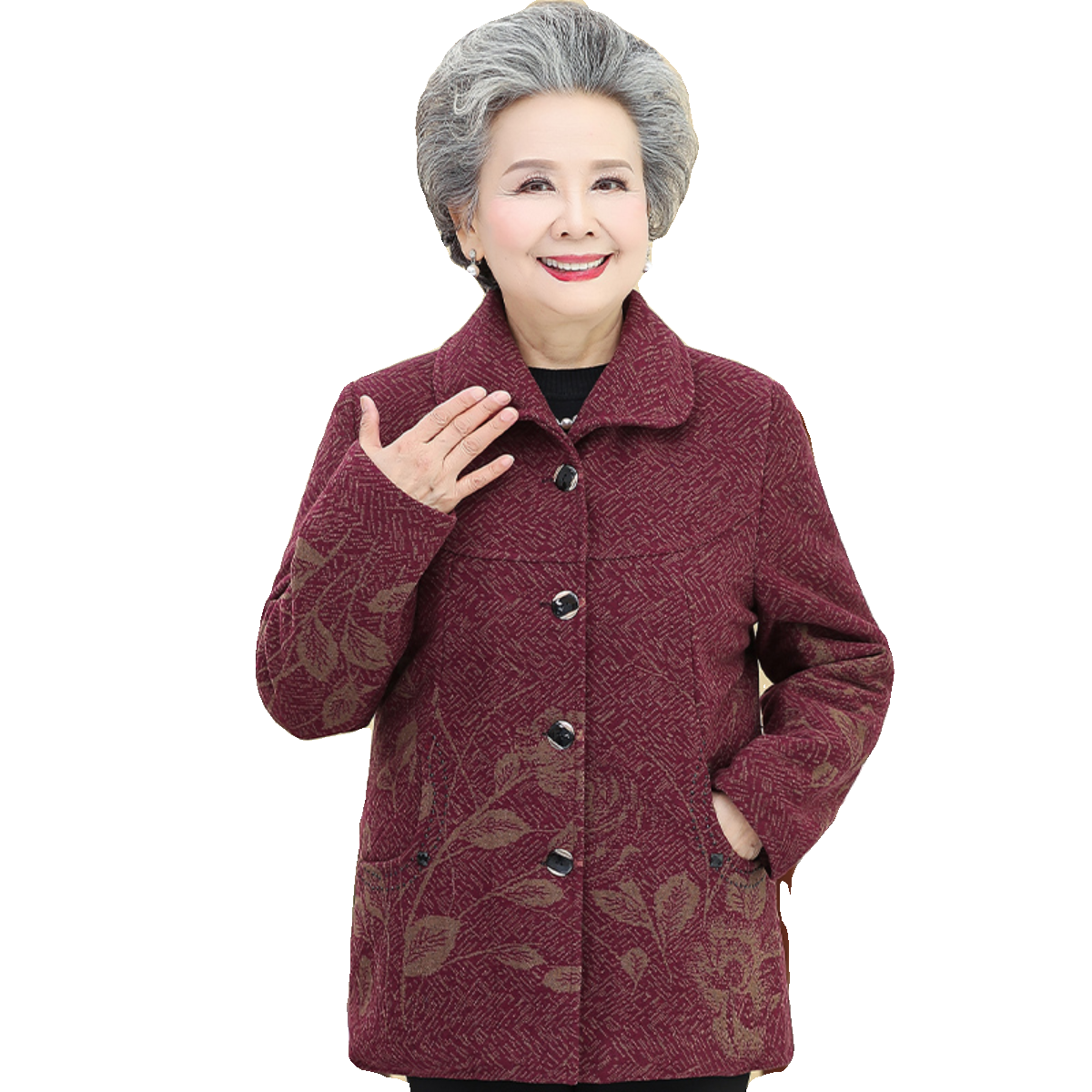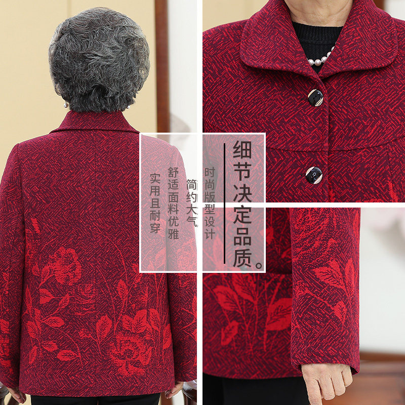 奶奶装秋冬加绒外套70岁80中老年人女妈妈春秋季呢子上衣老人衣服