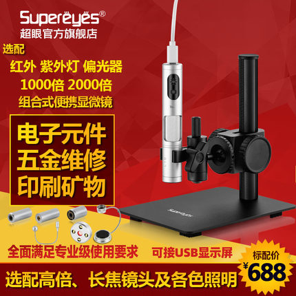 超眼500万USB选配长焦2000倍镜头手持便携智能装备工业数码电子显微镜机器视觉点胶机印刷放大镜古迹鉴定B011
