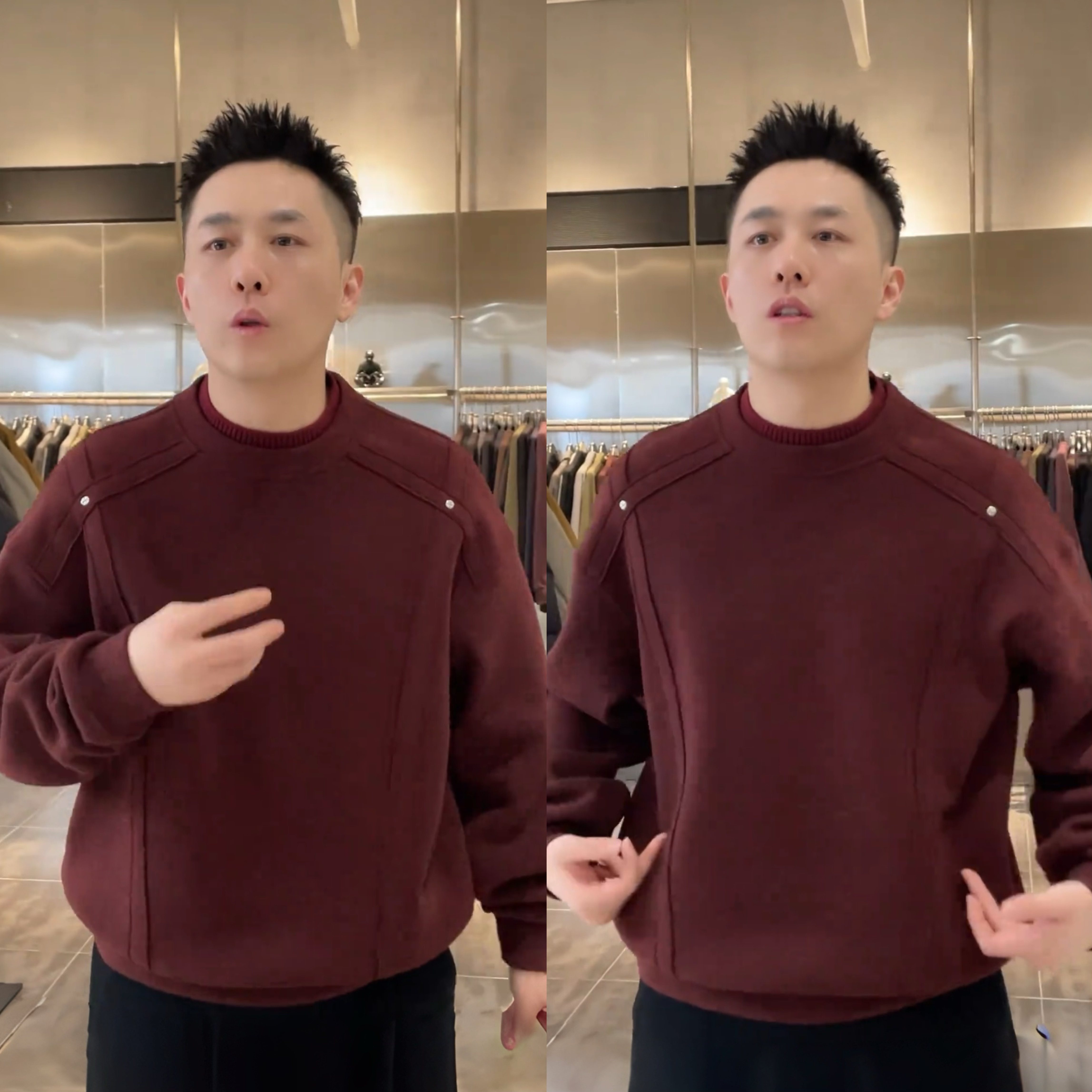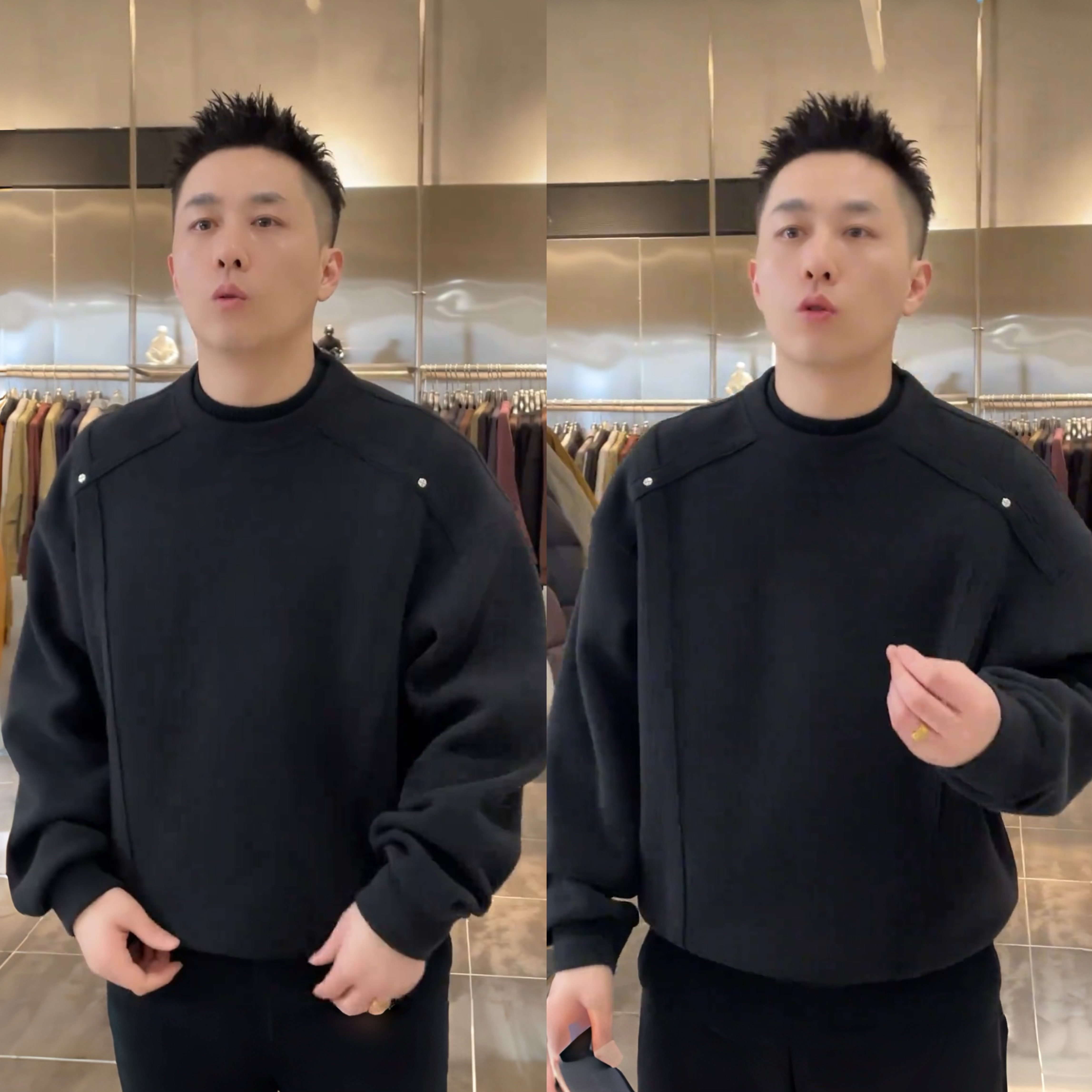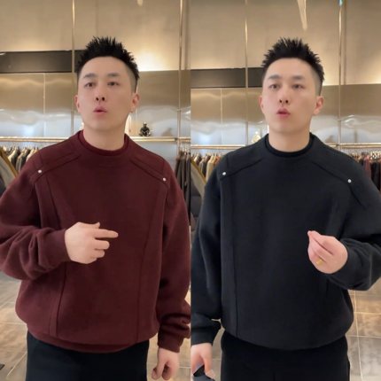 2026冬季加绒加厚设计感圆领卫衣男时尚简约百搭宽松舒适休闲上衣