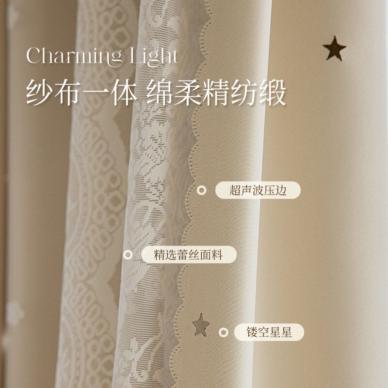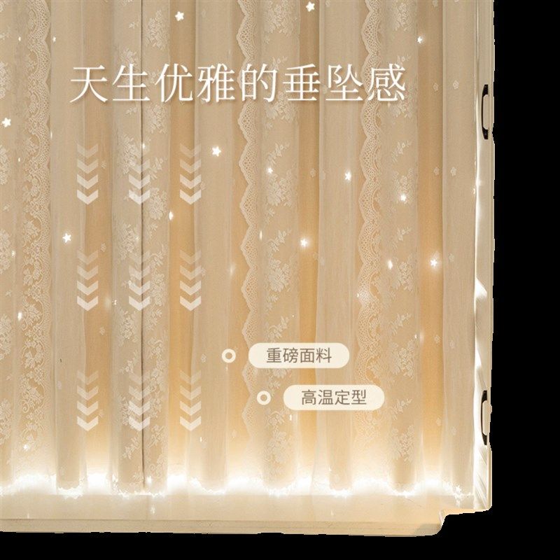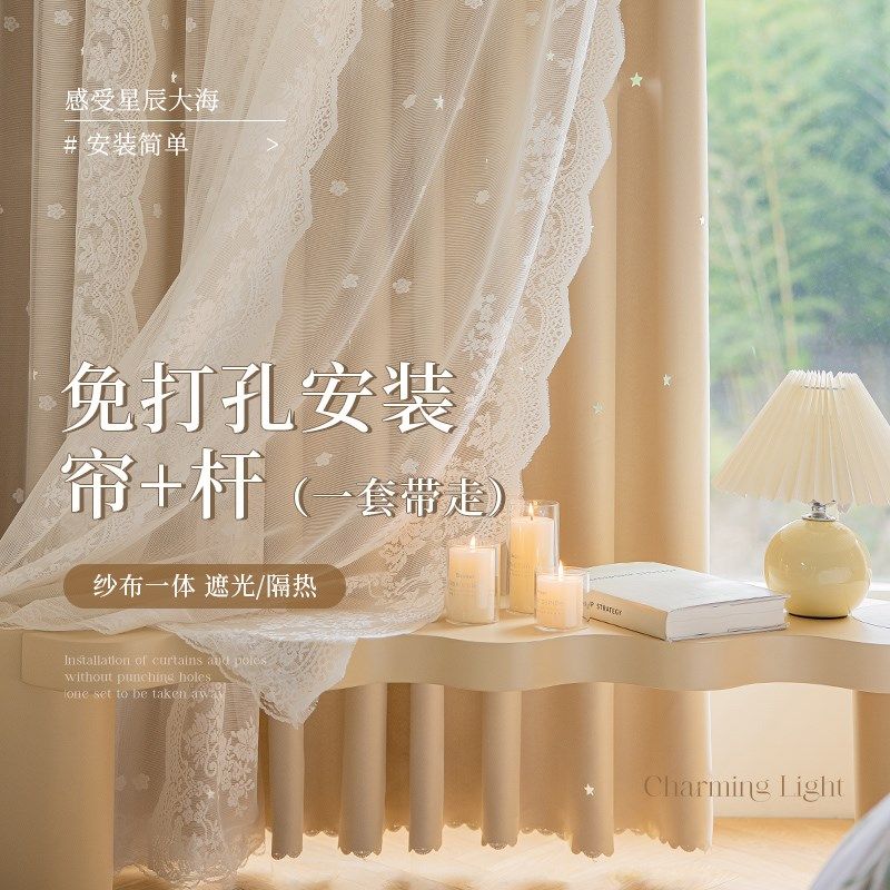 公主风窗帘免打孔安装送伸缩杆一整遮光卧室飘窗小窗户层带纱