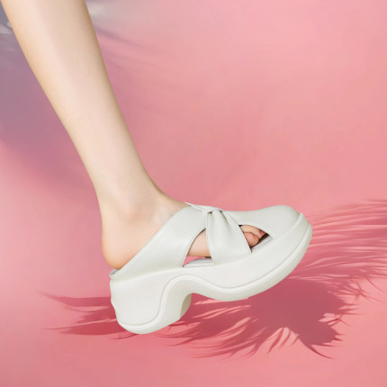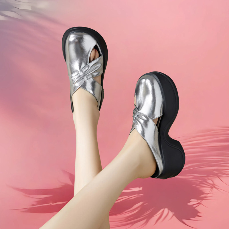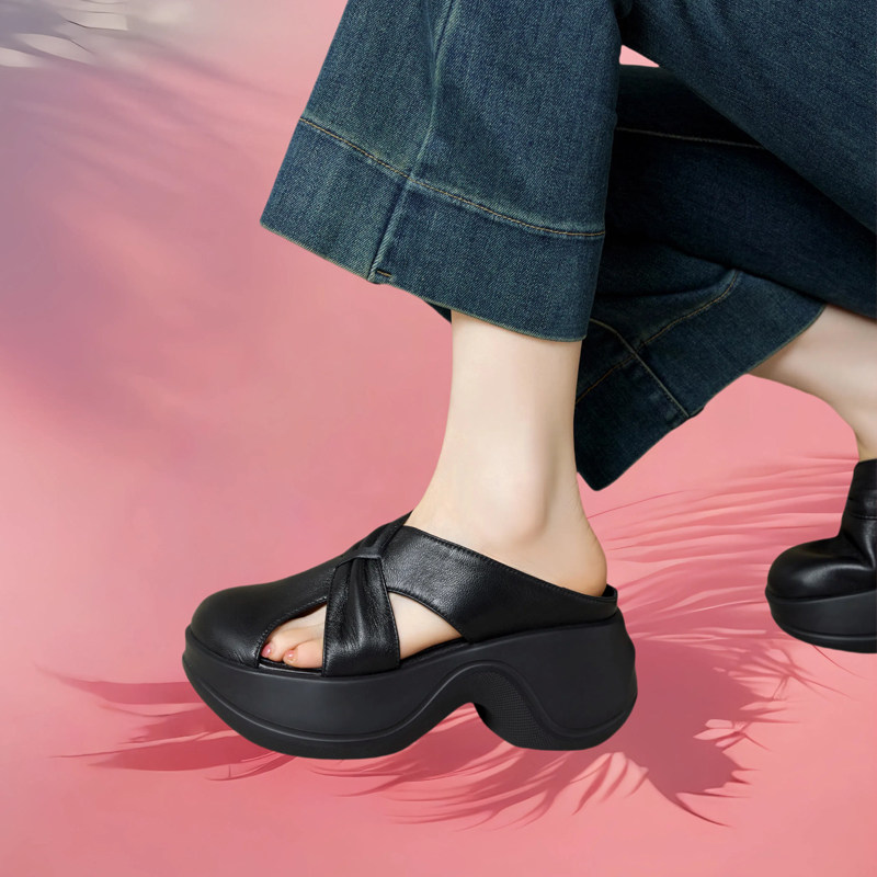 厚底休闲包头凉拖鞋女夏季外穿2025新款松糕坡跟踩屎感真皮凉鞋