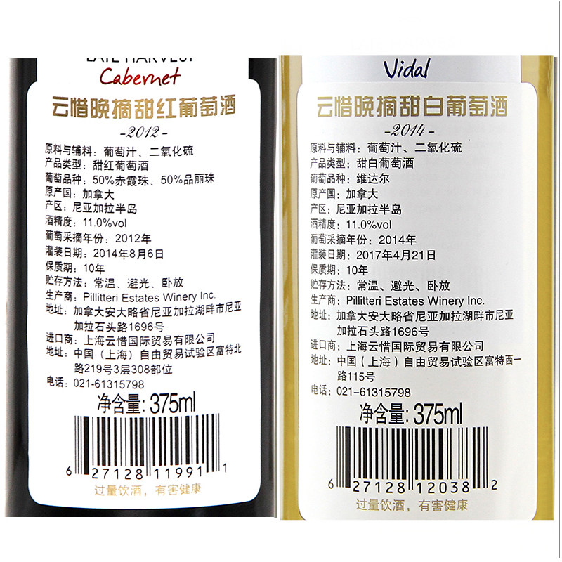 云惜加拿大冰酒庄园原瓶进口单支VQA级晚摘甜葡萄酒 红/白 Yancy