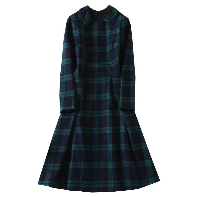 欧货女装凯特王妃同款高端长裙春秋季新款法式复古气质格子连衣裙
