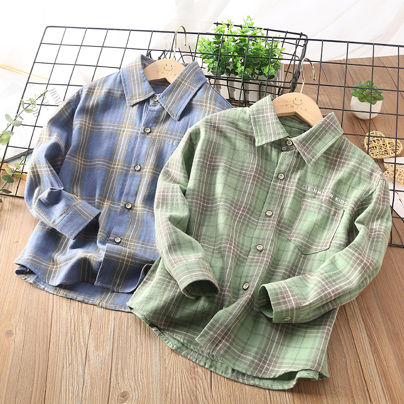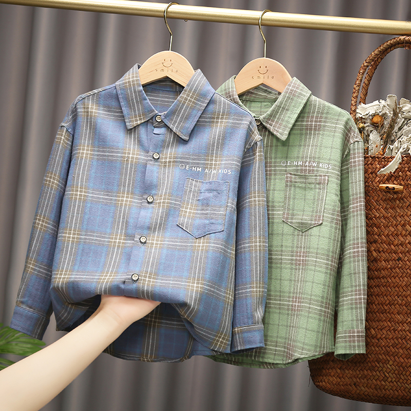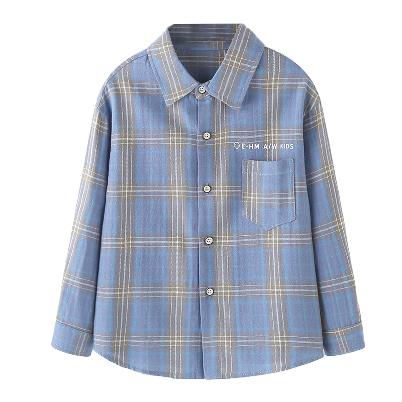 巴拉可儿男童长袖衬衫纯棉儿童格仔衫春秋中大童条纹童装格子衬衣