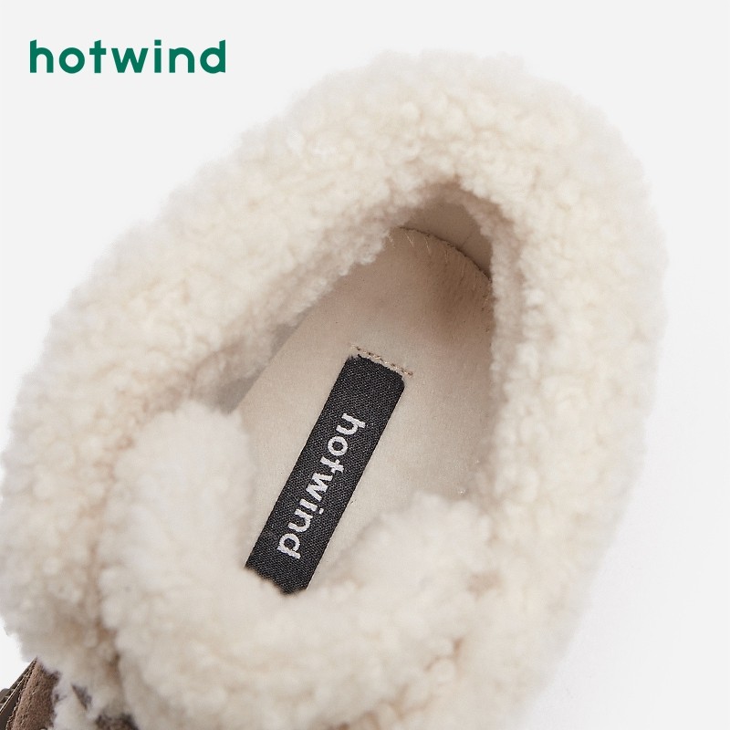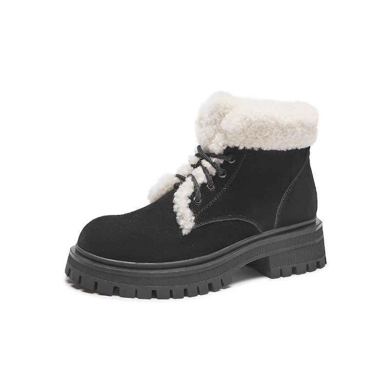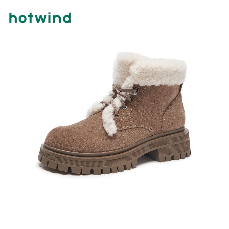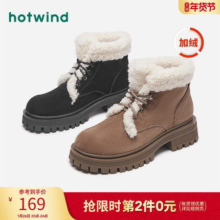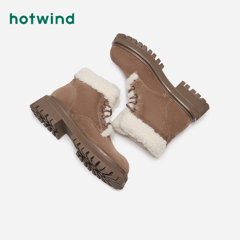 热风冬季新款女士时尚休闲靴加绒保暖舒适雪地靴粗跟马丁靴