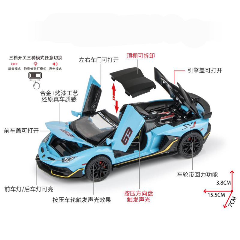 1:32兰博基尼svj合金车模仿真汽车模型跑车敞篷儿童玩具车礼物男