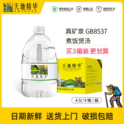 天地精华天然矿泉水4.5L大桶装泡茶弱碱性家庭饮用水整箱装多规格