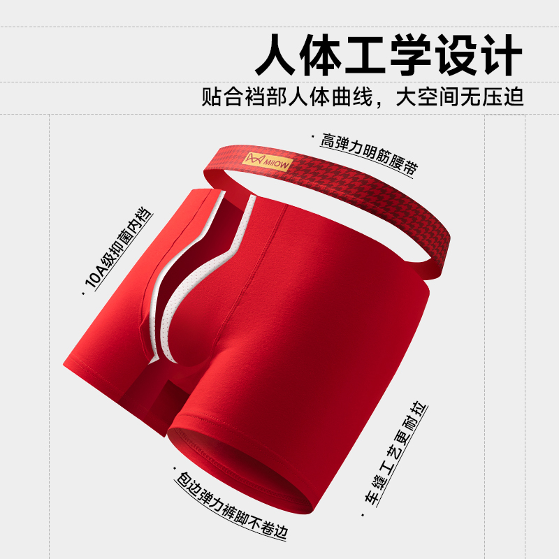 猫人本命年男士内裤红色2025蛇年短裤男款纯棉平角四角裤结婚礼物