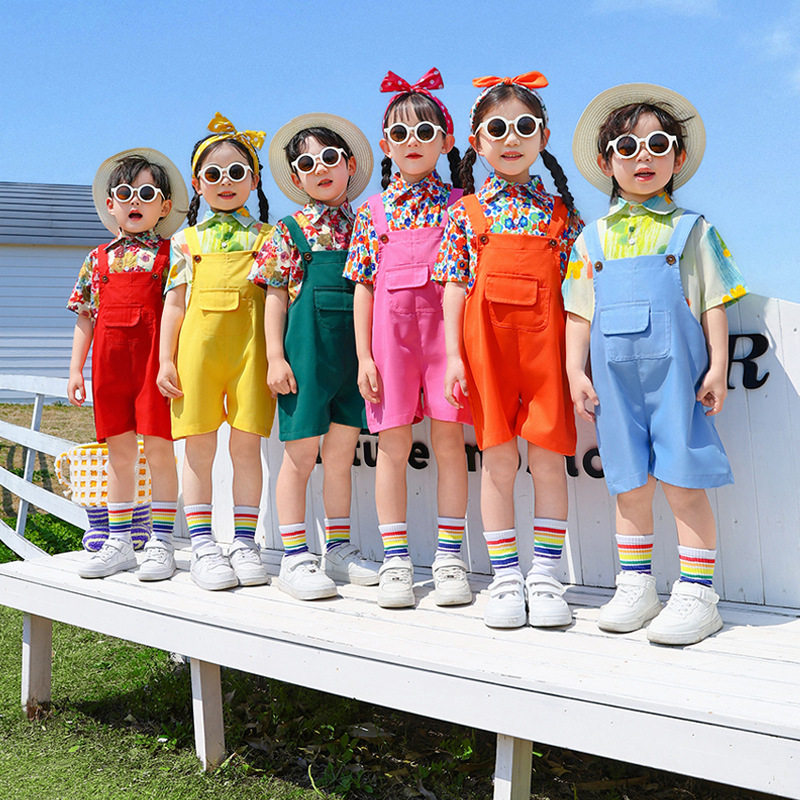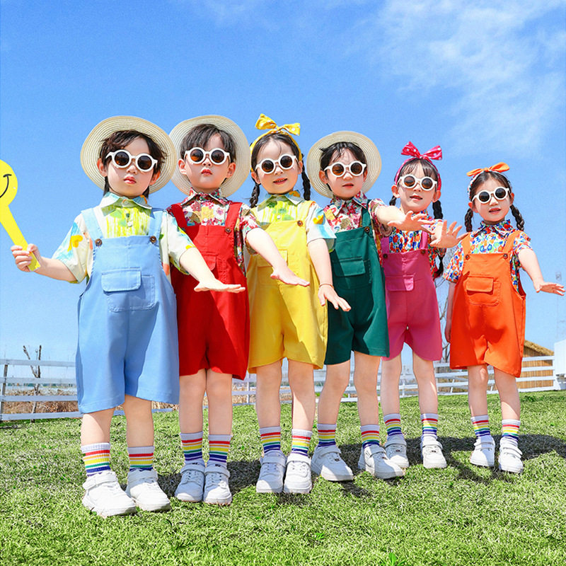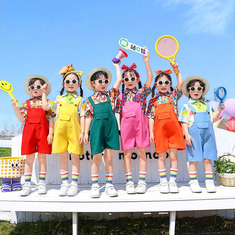 六一儿童演出服小学生合唱啦啦队舞蹈表演服背带裤幼儿园毕业服装