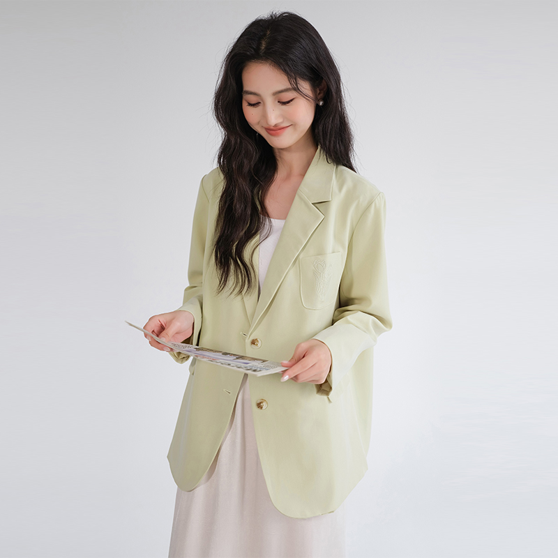 蓝若水大码女装宽松廓形西装外套2025秋季新款胖MM时尚刺绣小西服