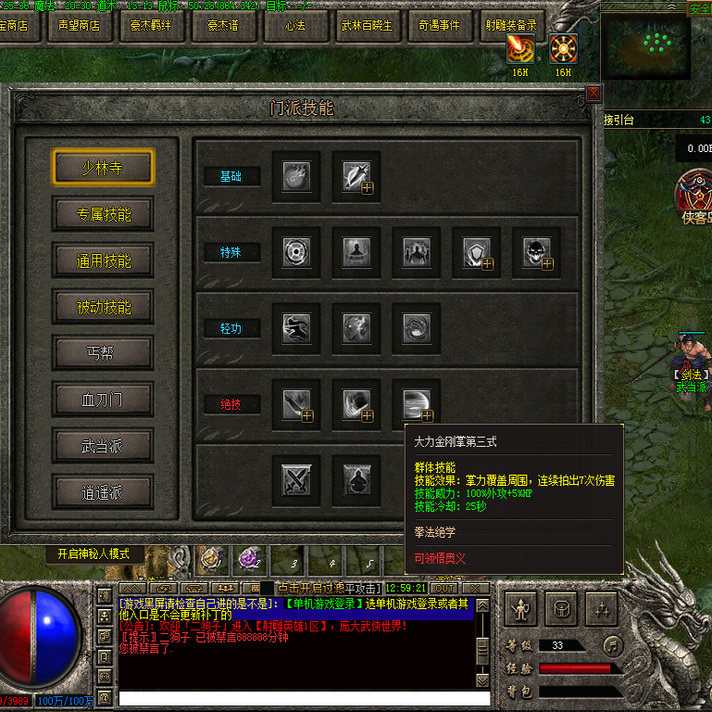 热血传奇单机版GEE射雕英雄五门派五大陆豪杰无双BOSS功法奥义
