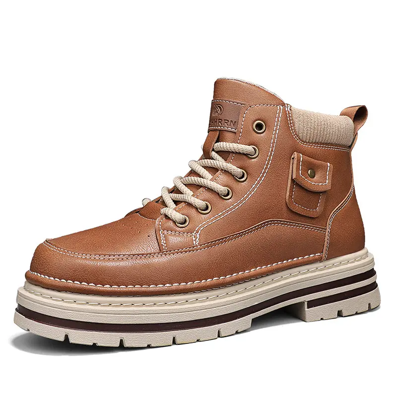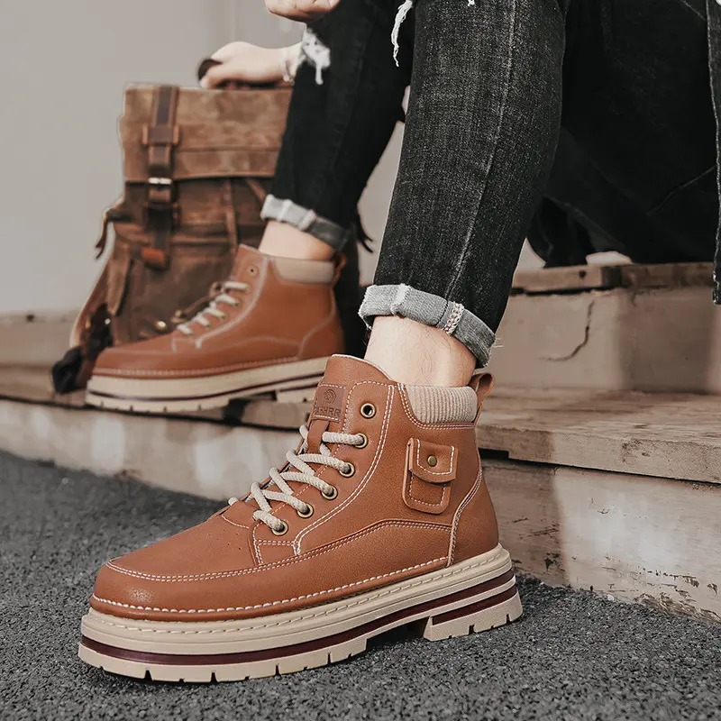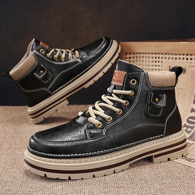 新款高帮英伦风马丁靴男士美式复古工装靴防滑耐磨增高休闲皮鞋男