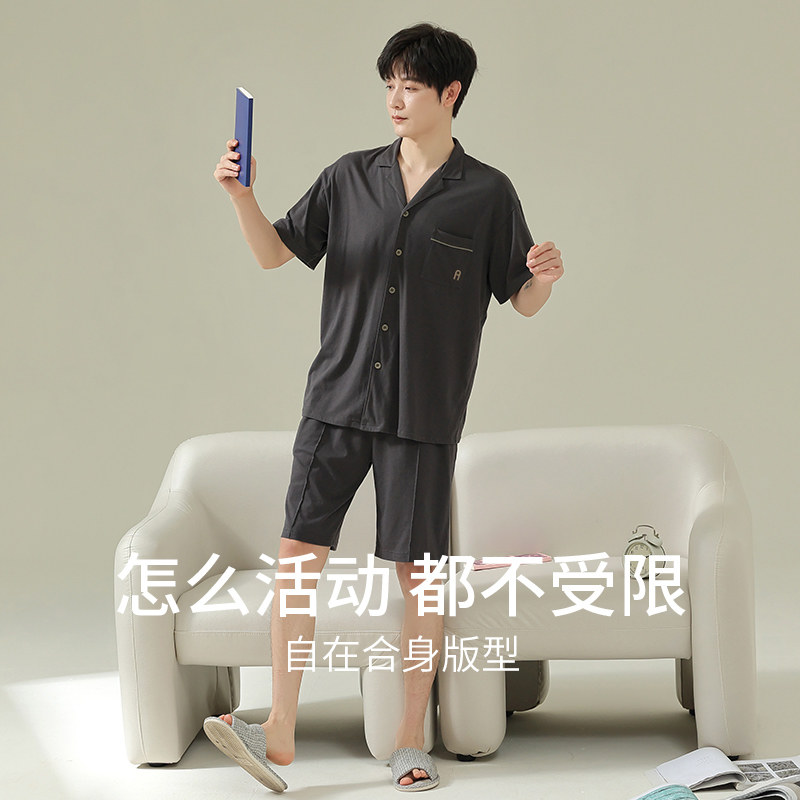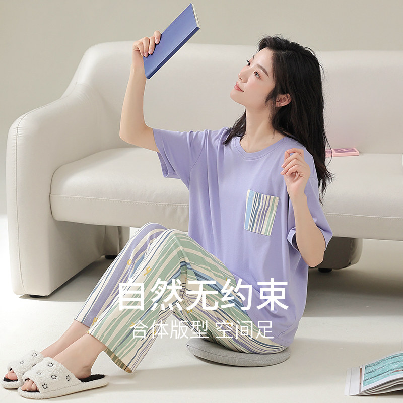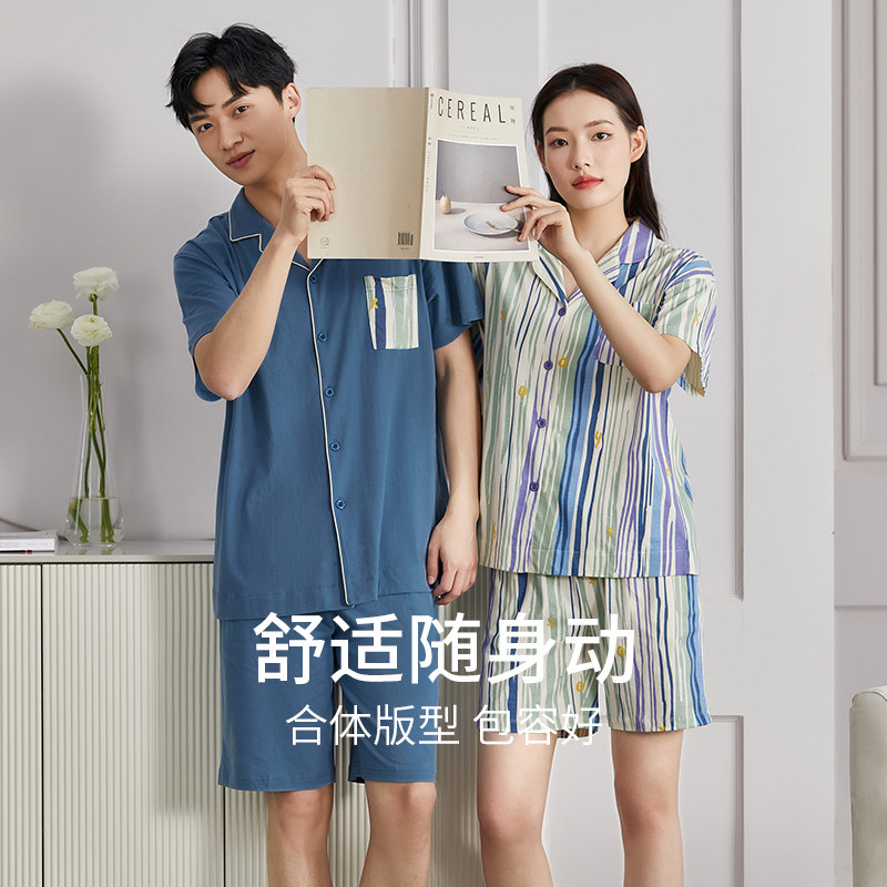 【断码清仓】秋鹿纯棉睡衣女春夏简约男士家居服情侣装短袖套装