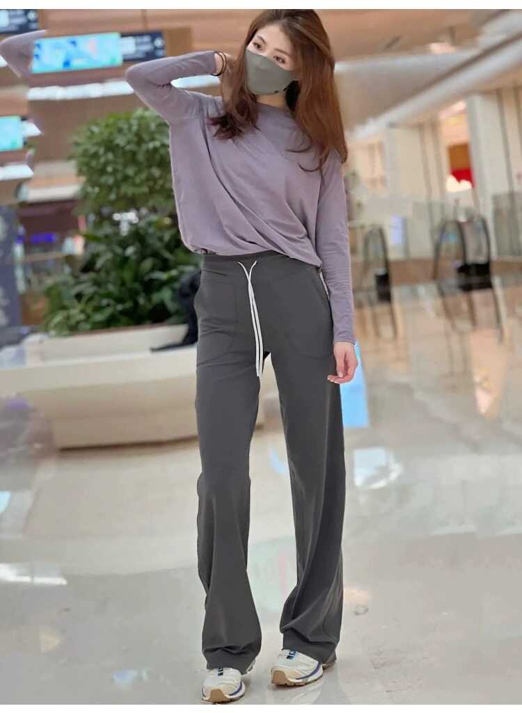 lulu瑜伽裤女外穿throwback抽绳直筒窄版阔腿裤高腰休闲运动裤