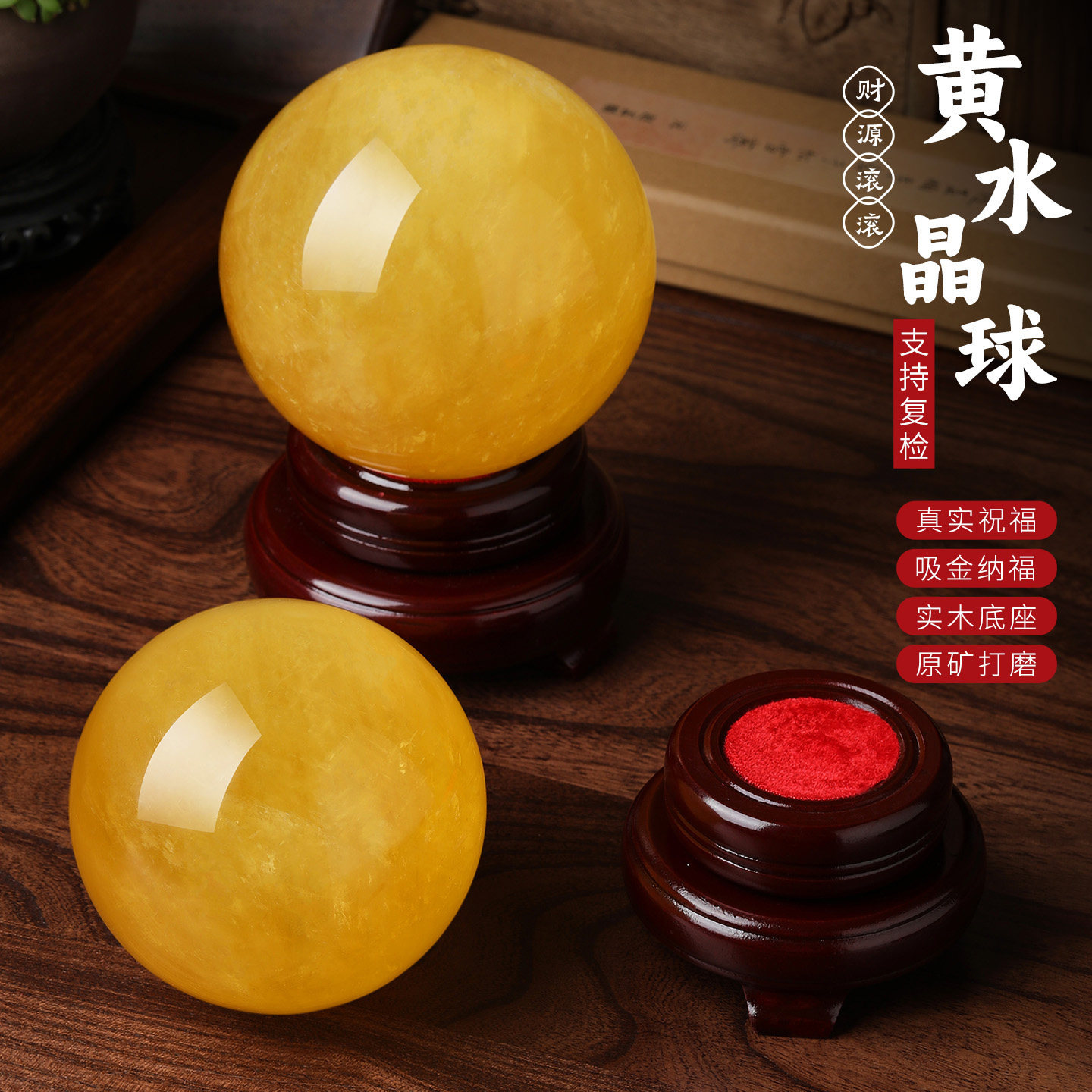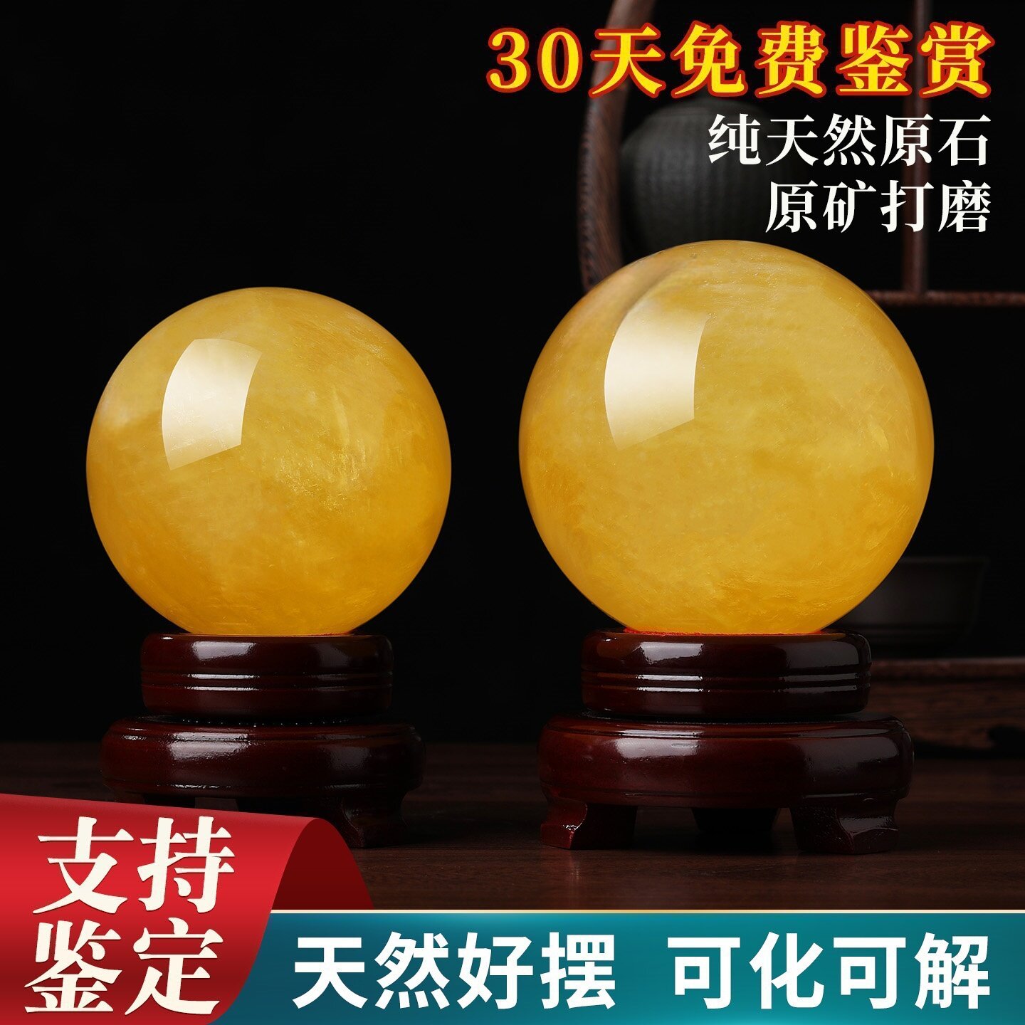 天然黄色真水晶球原石厨房客厅装饰办公室高档招财摆件