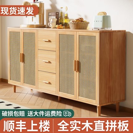 餐边柜靠墙一体茶水柜置物柜藤编厨柜玄关储物柜抽屉柜实木收纳柜