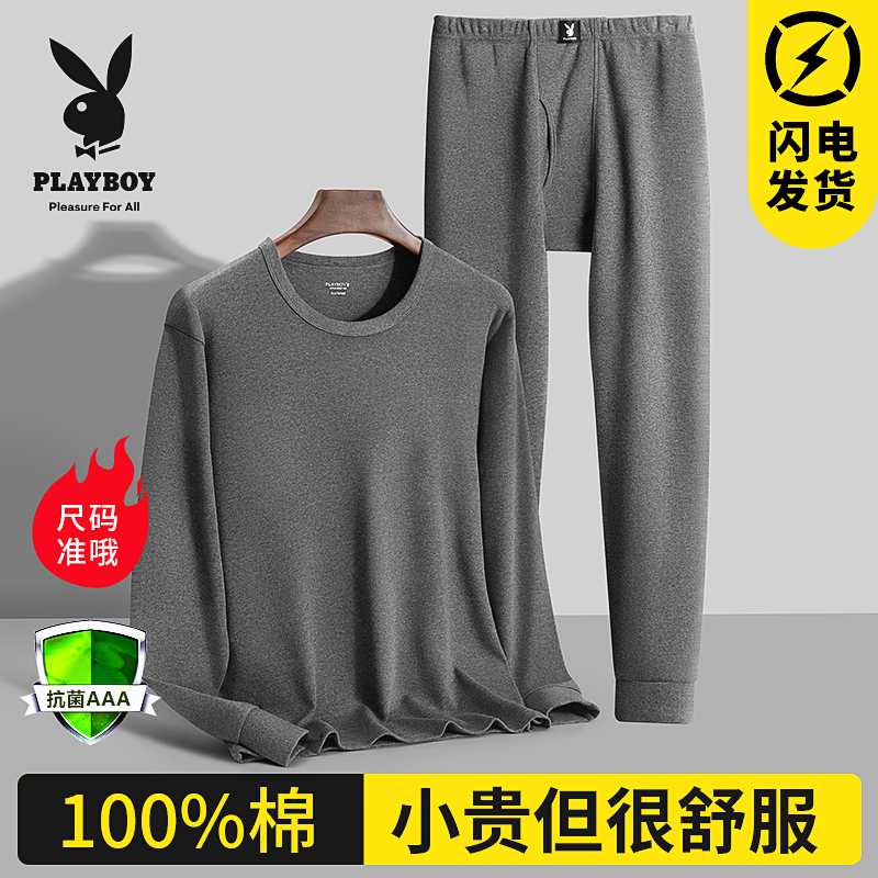 花花公子保暖内衣男款秋衣秋裤男士套装纯棉薄款打底全棉毛衫秋季