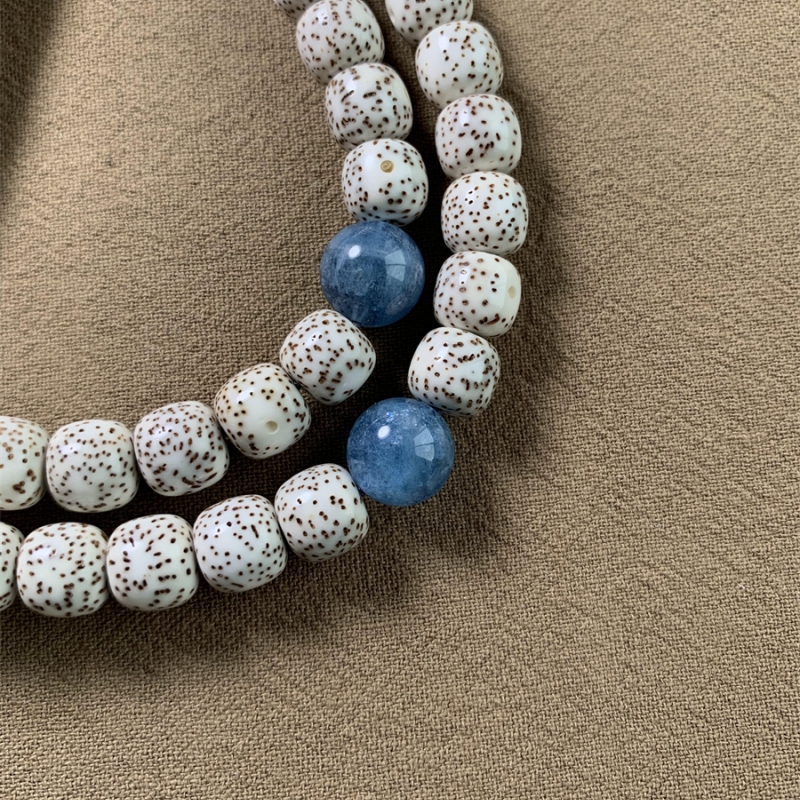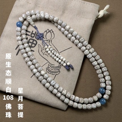 星月菩提108颗佛珠手串项链手链装饰文玩男女顺白桶珠长串菩提子