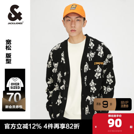 杰克琼斯奥莱男装秋季衣服潮流法斗狗满印潮字母刺绣毛衣针织衫男