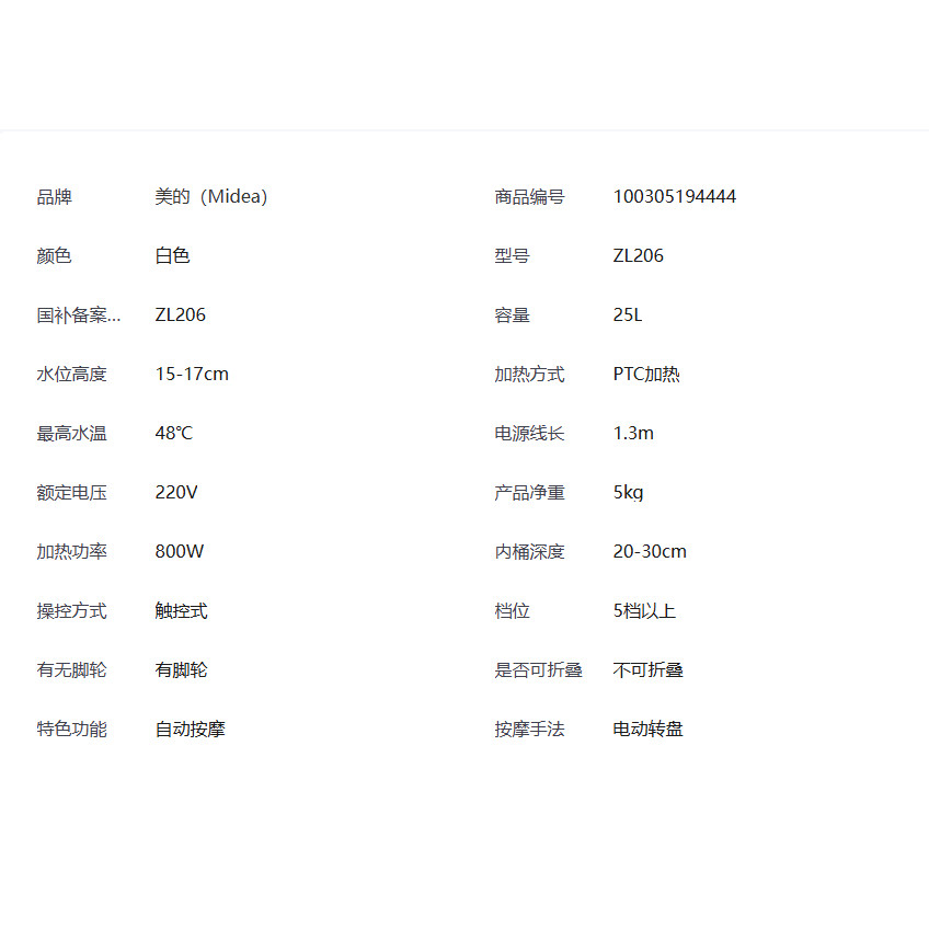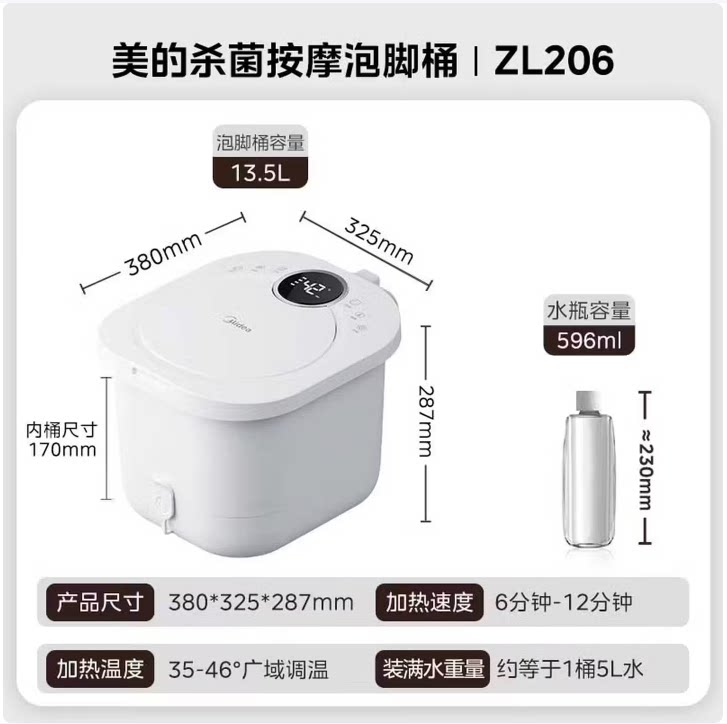 美的足浴器PTC加热电动按摩泡脚桶调温自动洗脚盆家用ZL205 ZL206