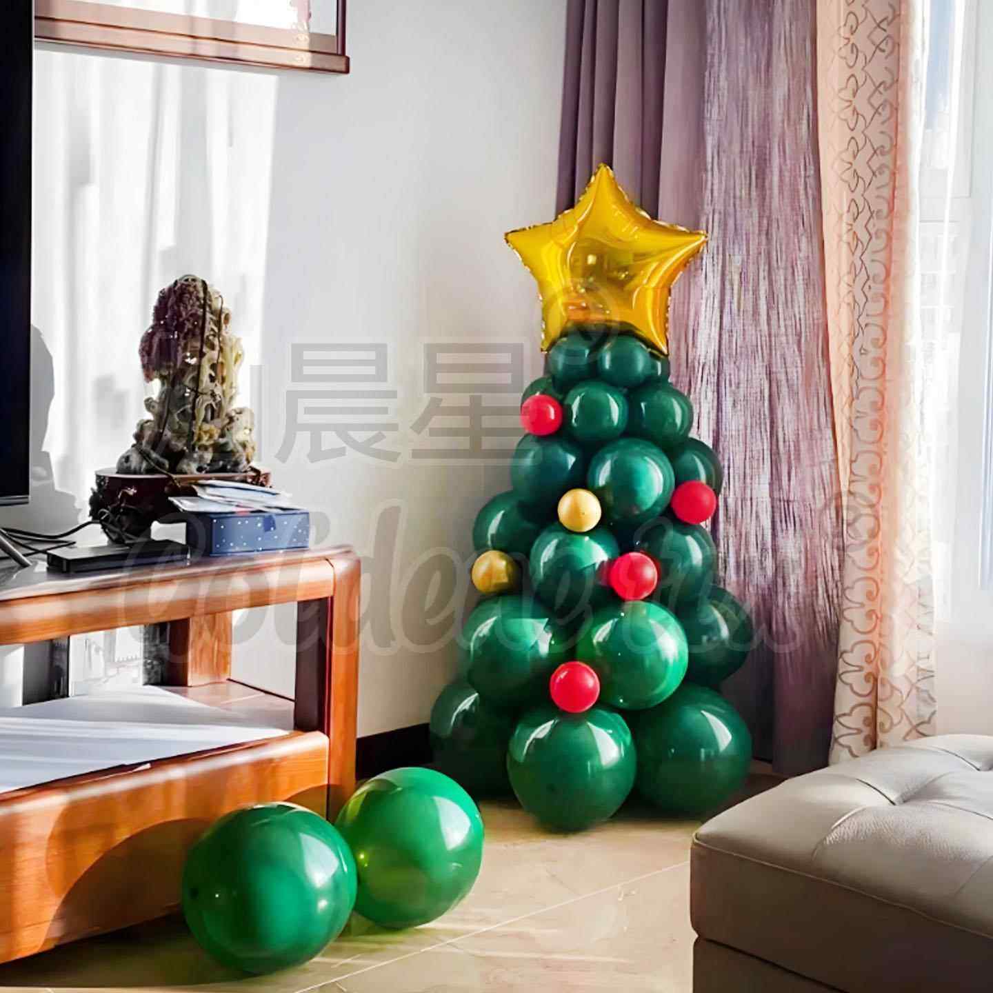 圣诞节墨绿色主题乳胶气球装饰布置圣诞树支架拱门定制印字双层球