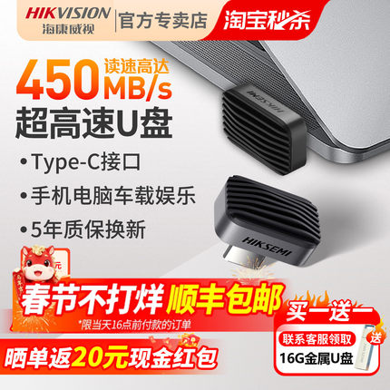 海康威视F450高速迷你U盘Type-C手机电脑车载娱乐通用优盘128G