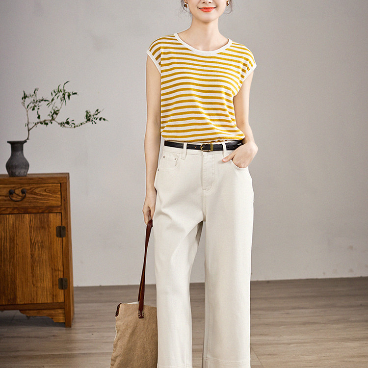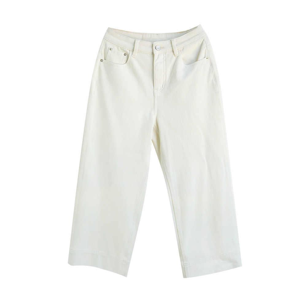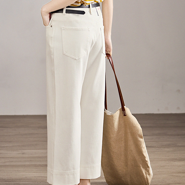 谷家 夏季新款通勤百搭白色直筒裤 高腰显瘦阔腿9分牛仔裤子微弹
