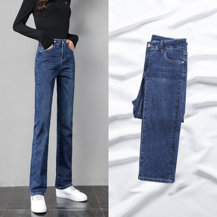 2025年春秋新款小直筒牛仔裤女chic高腰宽松显瘦弹力百搭长裤子潮