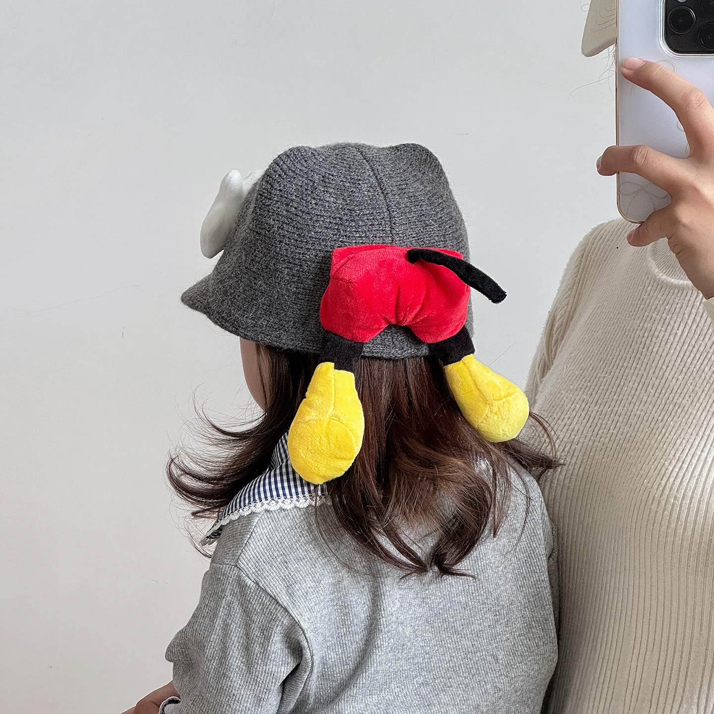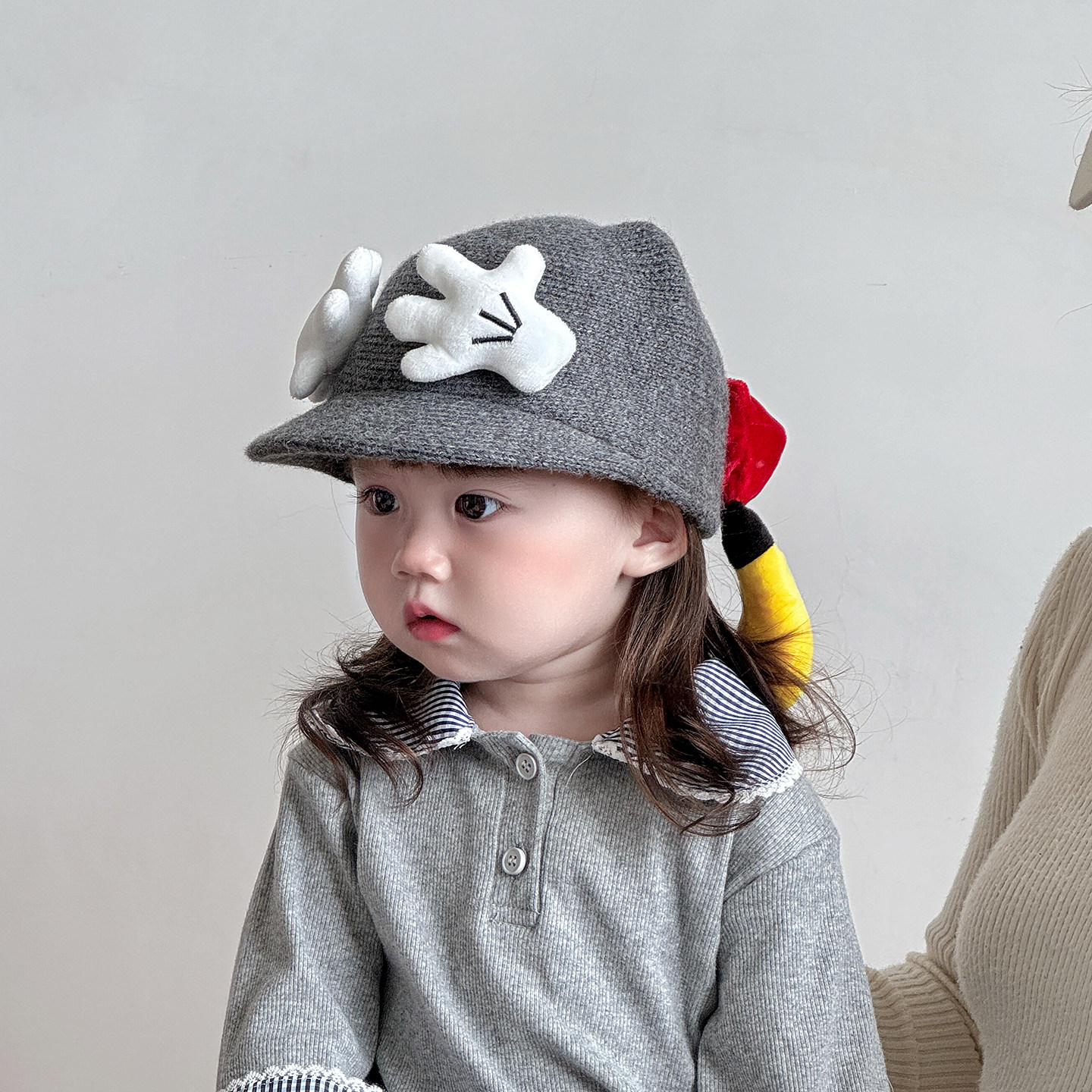 宝宝帽子秋冬季可爱手掌米奇儿童鸭舌帽保暖毛呢男女童棒球马术帽