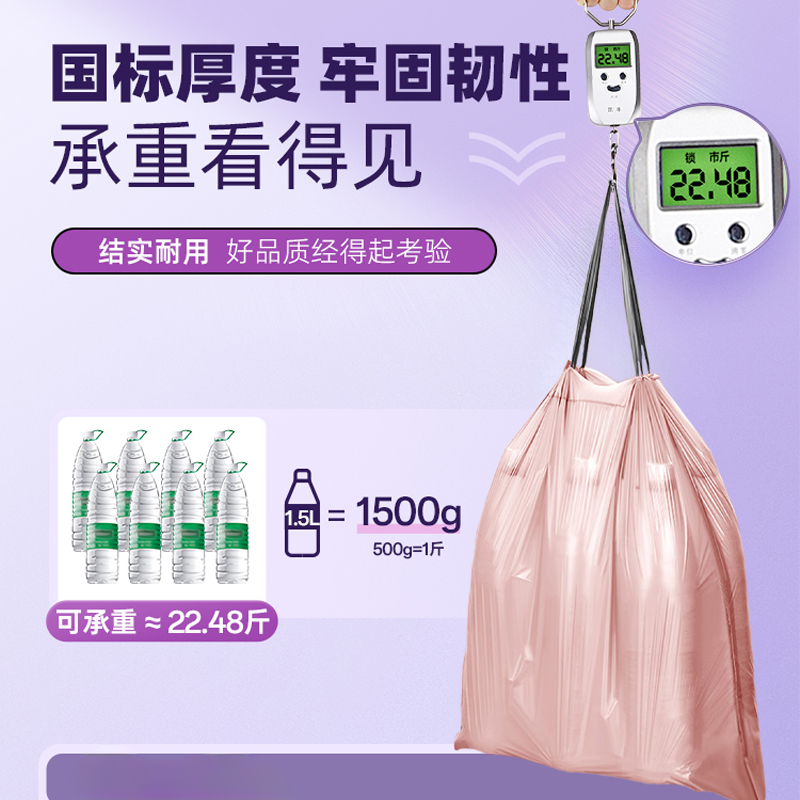 免撕抽绳垃圾袋家用手提式加厚厨房卫生间大号塑料袋子实惠装收纳