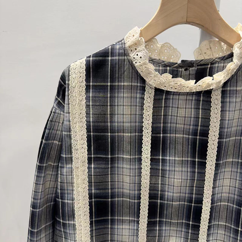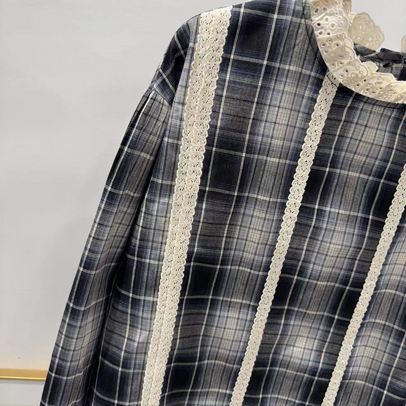 彩色豆豆家早秋新品棉质格子花边拼接女长袖衬衫韩系百搭有大码
