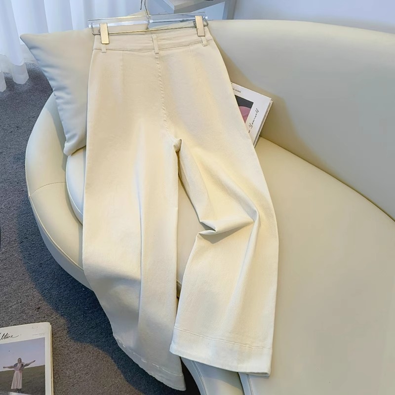 米白色阔腿牛仔裤子女秋冬2025新款高腰窄版宽松小个子九分直筒裤