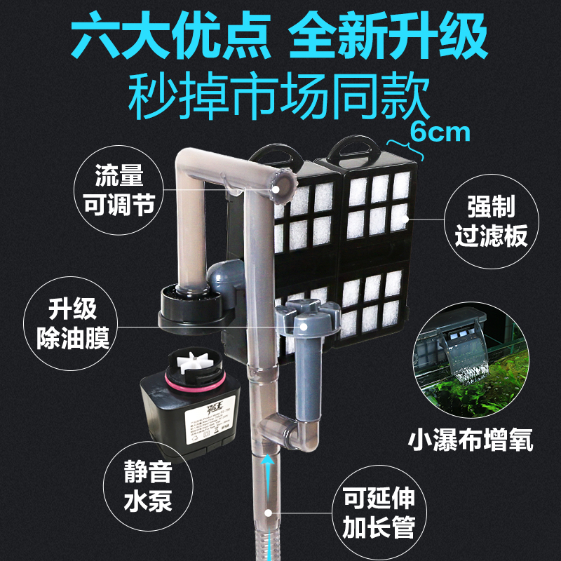 鱼缸过滤器三合一小型外置瀑布壁挂式龟小低音过滤水泵净水循环泵