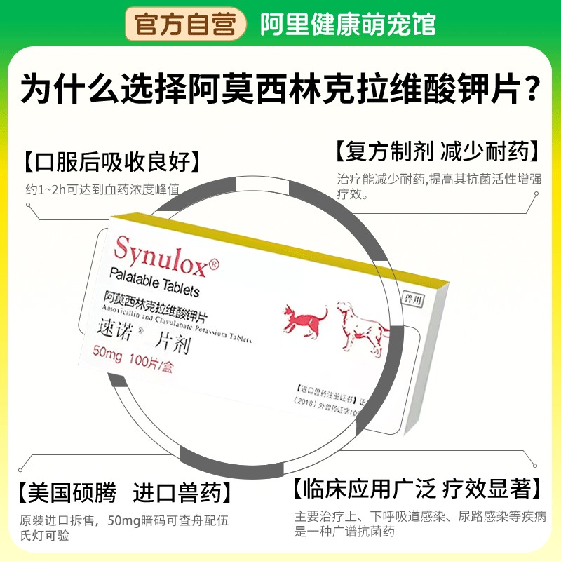 速诺阿莫西林克拉维酸钾消炎片猫咪感冒药猫鼻支咳嗽狗狗泌尿感染