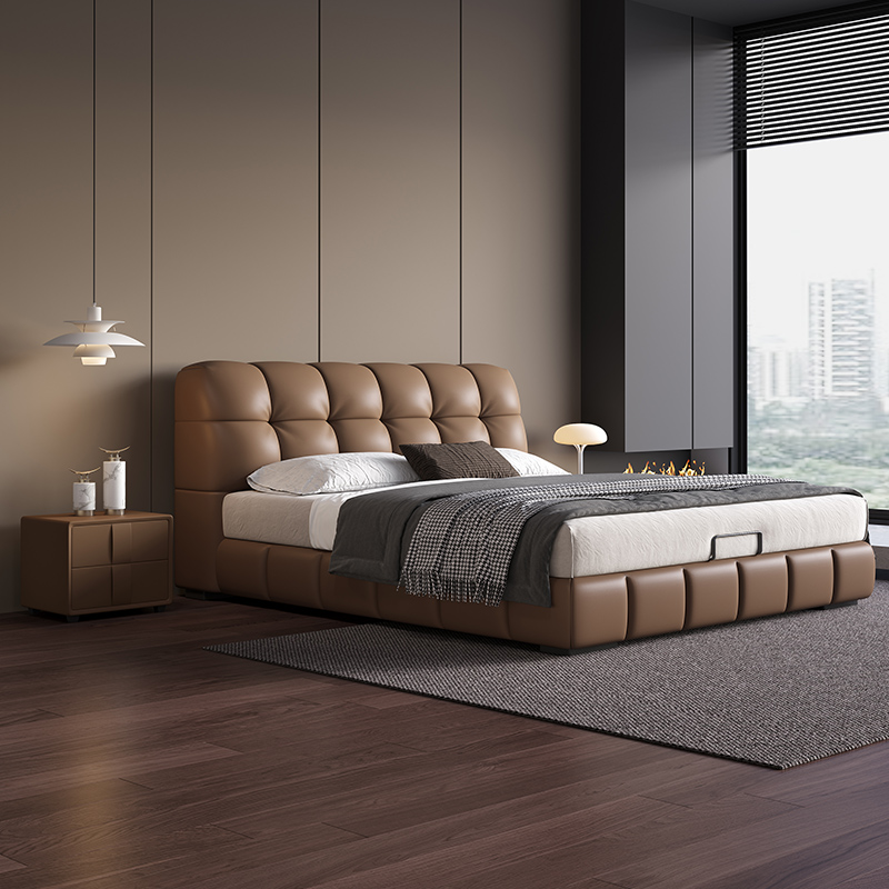 政府补贴现代简约泡芙床奶油风小户型布艺软包双人床双人储物大床