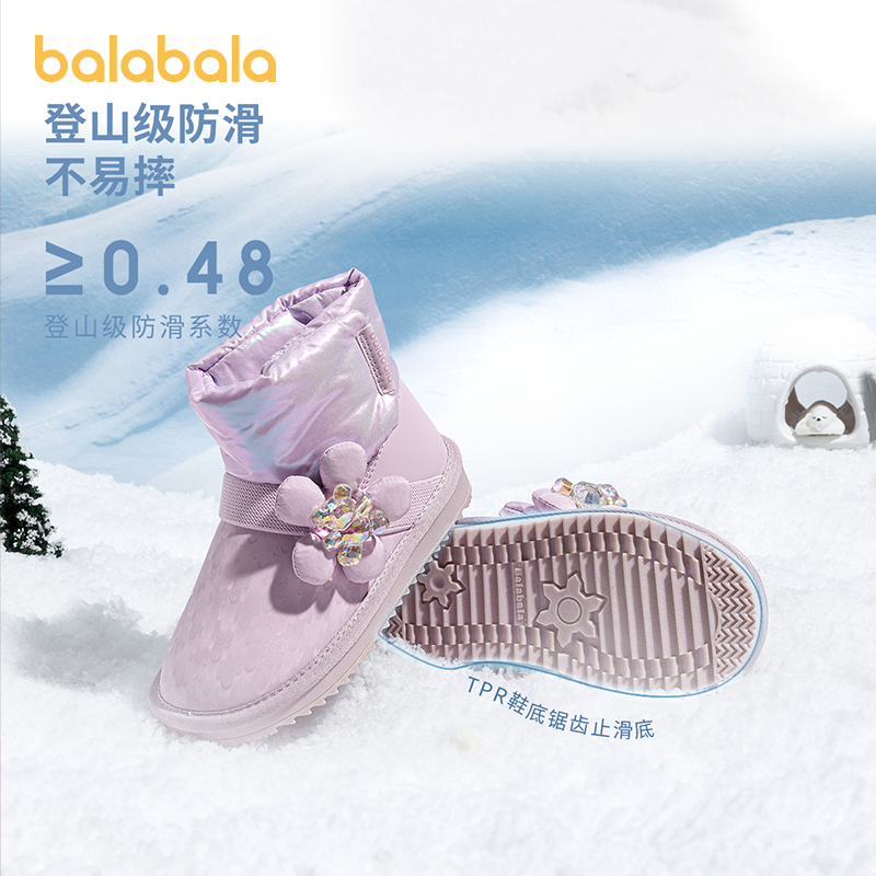 巴拉巴拉童鞋儿童雪地靴女童短靴女孩加厚加绒冬季靴子保暖防滑潮