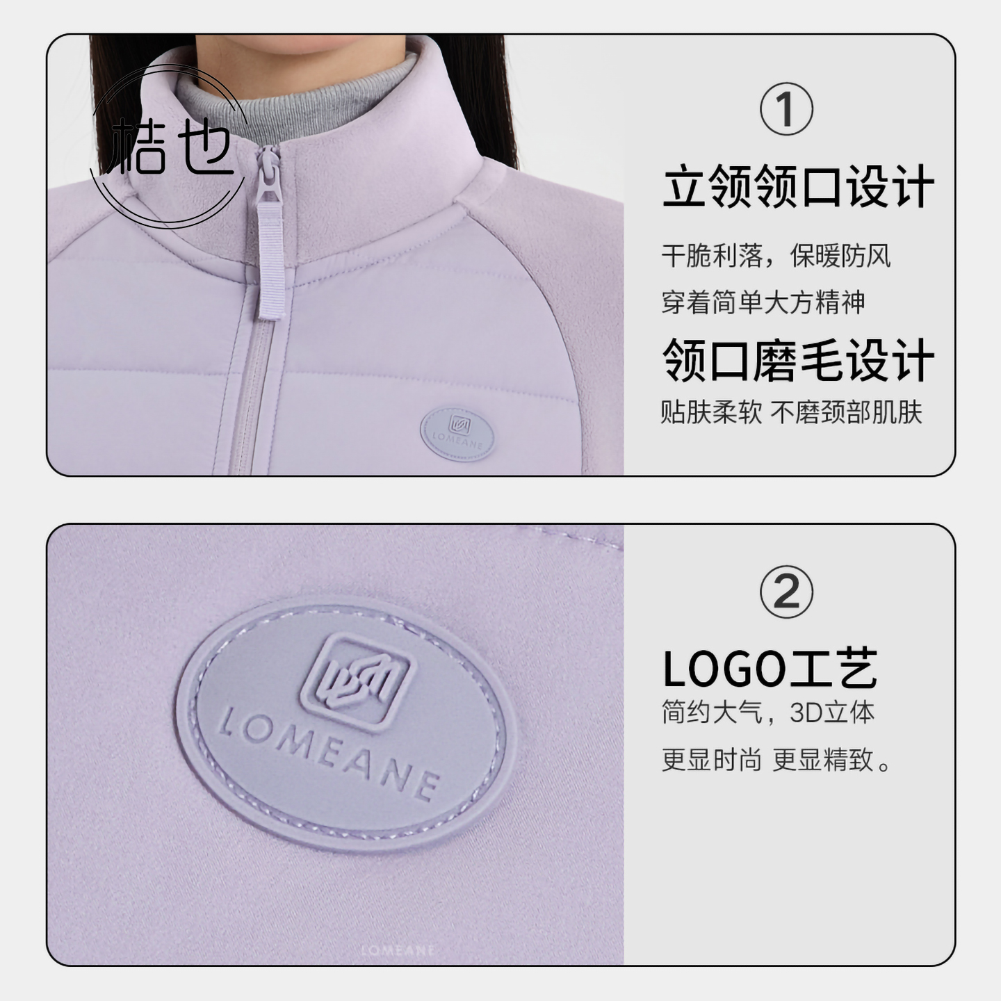 桔也8801男女冬季新款轻薄保暖羊毛棉服立领拼接加厚棉衣拉链外套