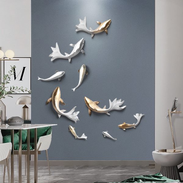 轻奢客厅墙面装饰挂件3d立体鱼挂饰新中式电视背景墙创意壁饰壁挂