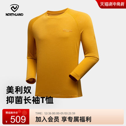 诺诗兰商场同款羊毛长袖T恤2025秋冬男士登山徒步上衣NTSGH5135S