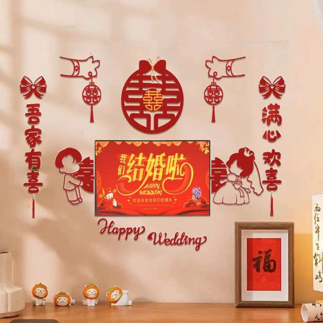 婚房布置套装结婚礼男方新房客厅电视背景墙拉花装饰婚庆用品大全