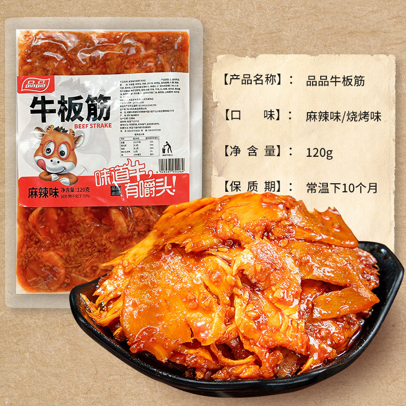 品品麻辣大片牛板筋120g香辣牛肉零食四川特产牛肉干牛筋辣条小吃